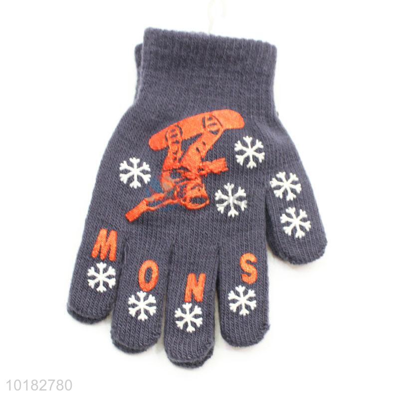 Grey knitted acrylic boy gloves