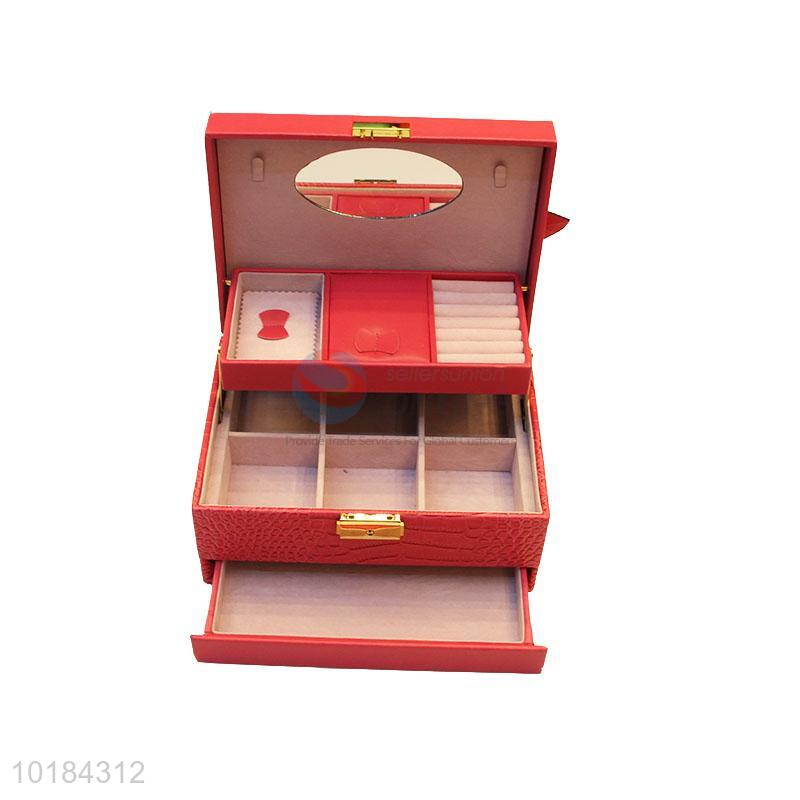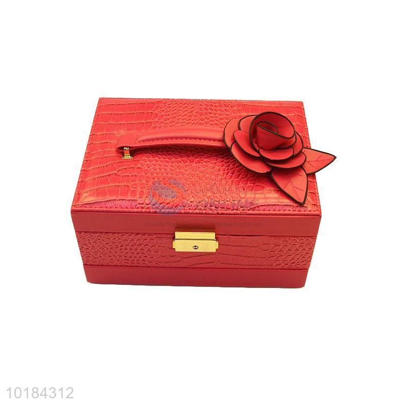 Luxury red drawer gift case jewelry box with flower decoration