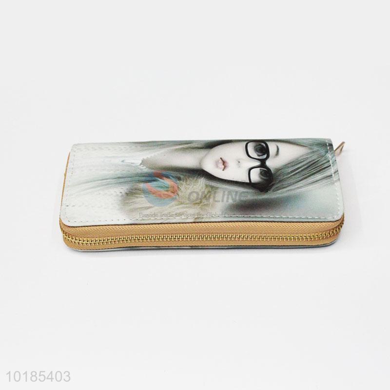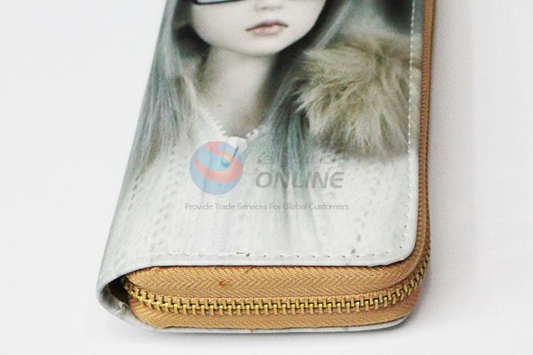 Top Selling Girl Pattern Rectangular PU Purse/Wallet for Ladies