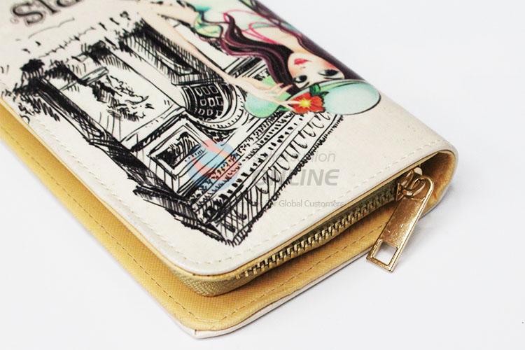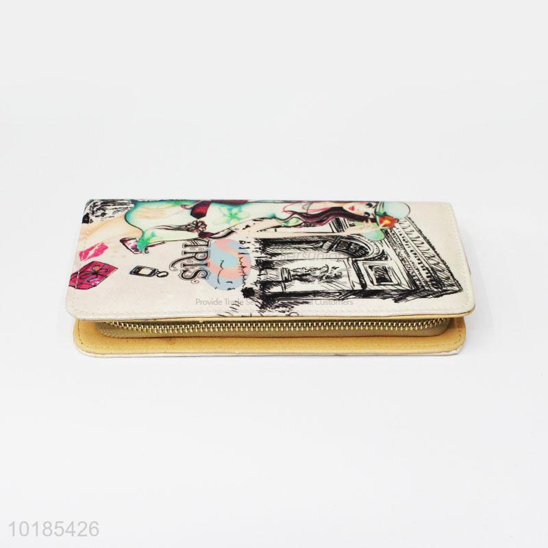 Beautiful Flower and Tower Design Rectangular PU Purse/Wallet for Ladies