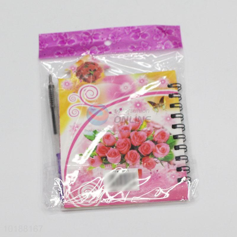 Flower Printed Spiral Notebook with Pen