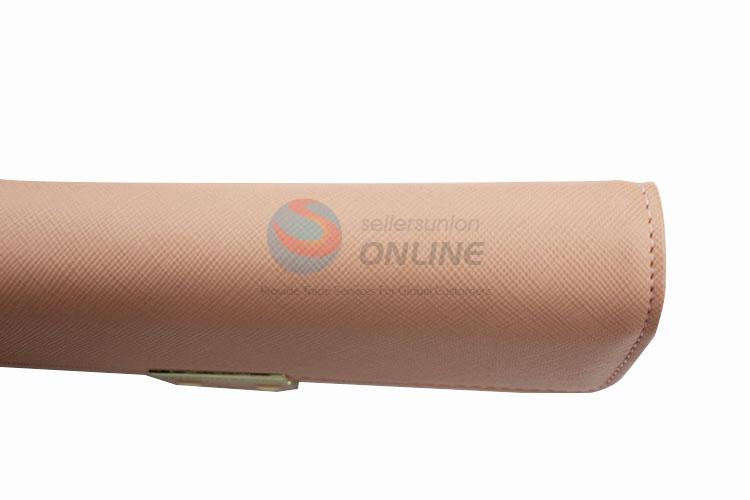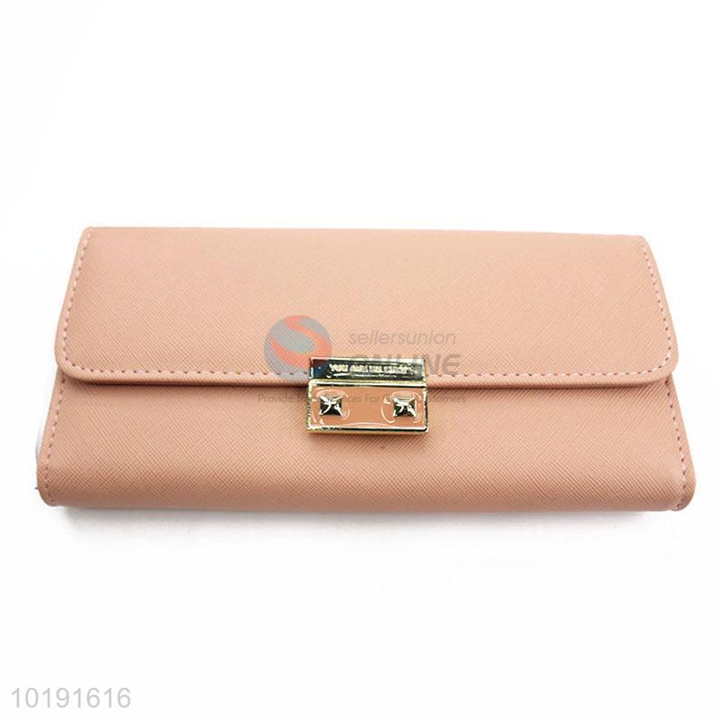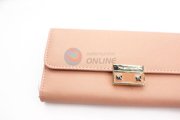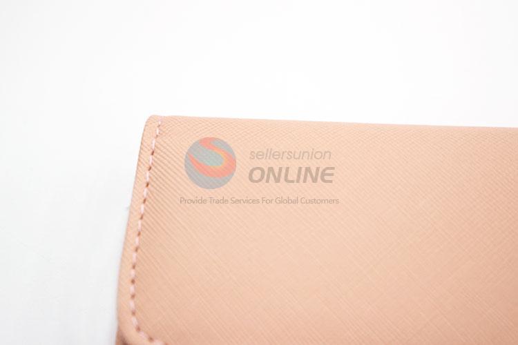 Fashion Pink PVC Leather Girl Women Wallet with Gold Metal Button