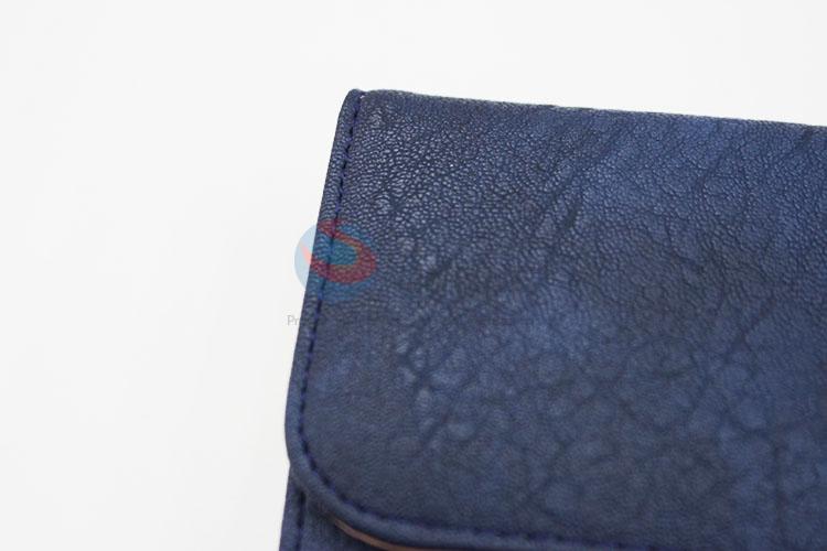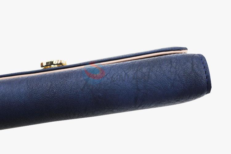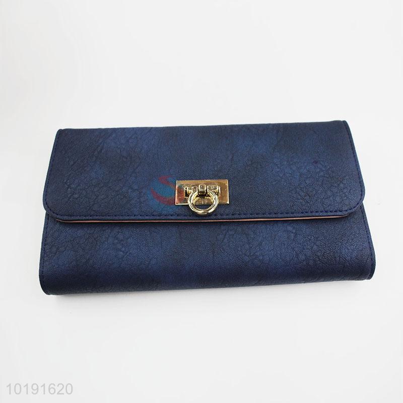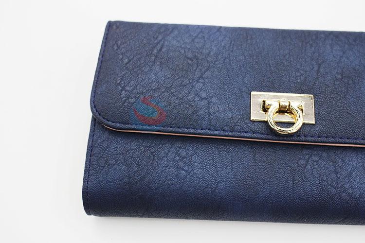 Wholesale Vintage Dark Blue PVC Leather Women Long Wallet with Gold Metal Button