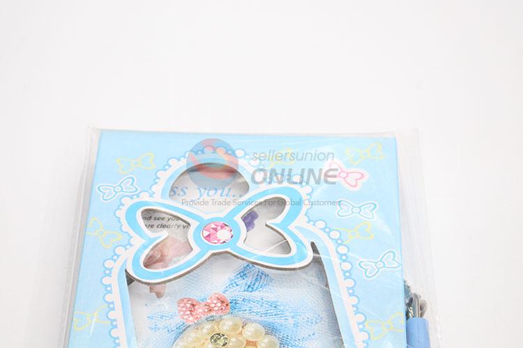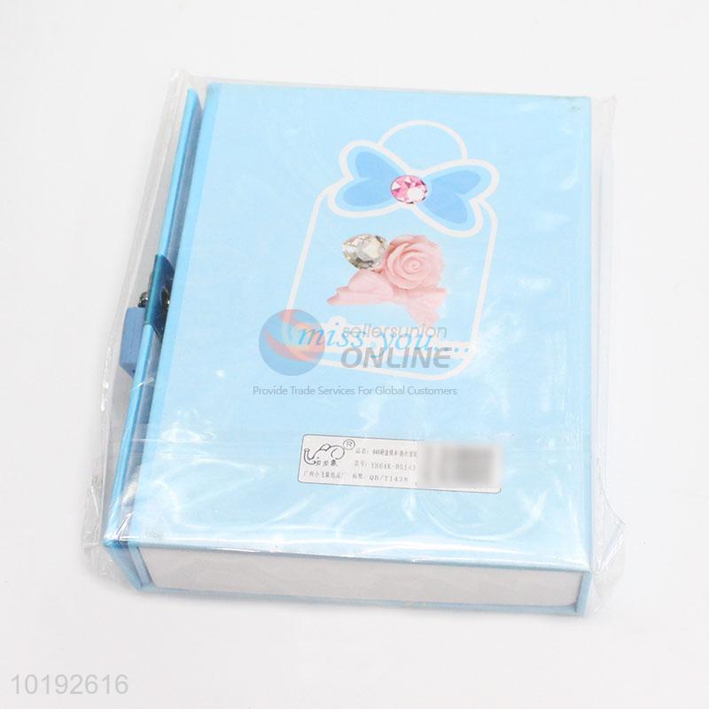 Promotional Bowknot Printed Sky Blue Dairy Notebook with Lock