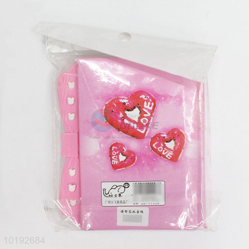 Pink Heart Pattern Password Cardboard Notebook for Promotion