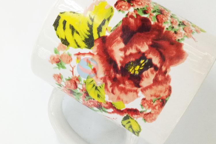 Good quality flower pattern ceramic water cup with handle