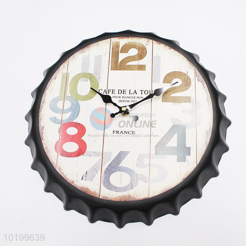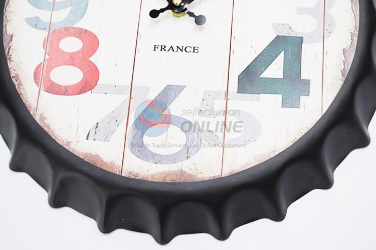Cool design bottle cap shape iron wall clock quartz clock