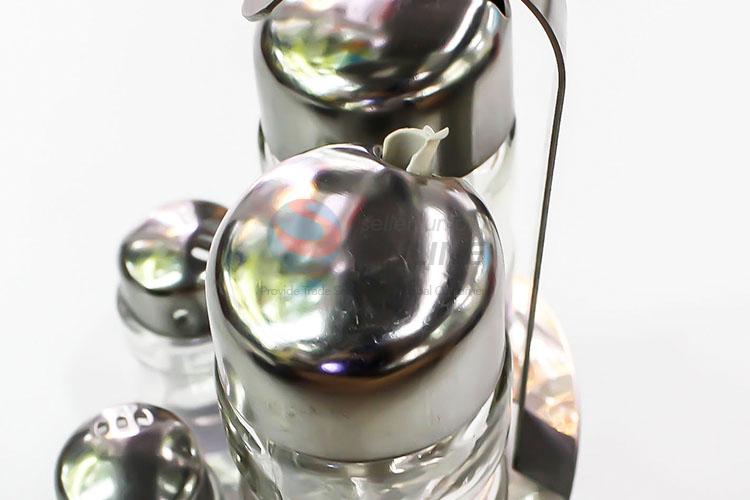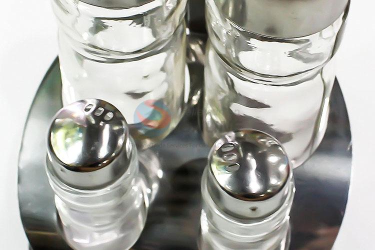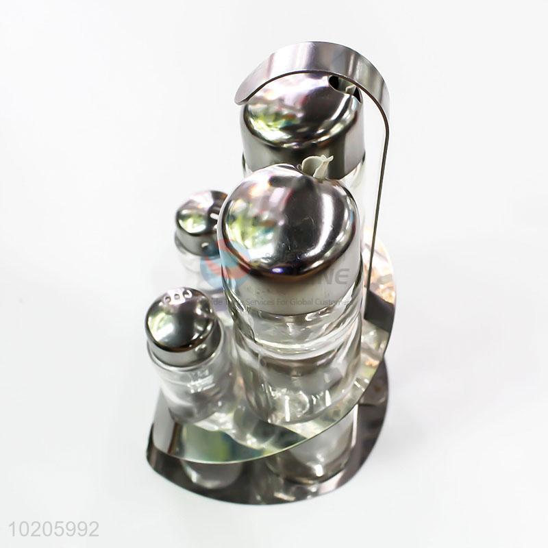 Glass Bottles for Oil and Vinegar, Spice Rack with Bottle Jars, Metal Condiment Set