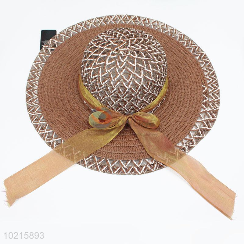 Factory Price Golden Bowknot Ribbon Women's Beach Cap Sun Hat