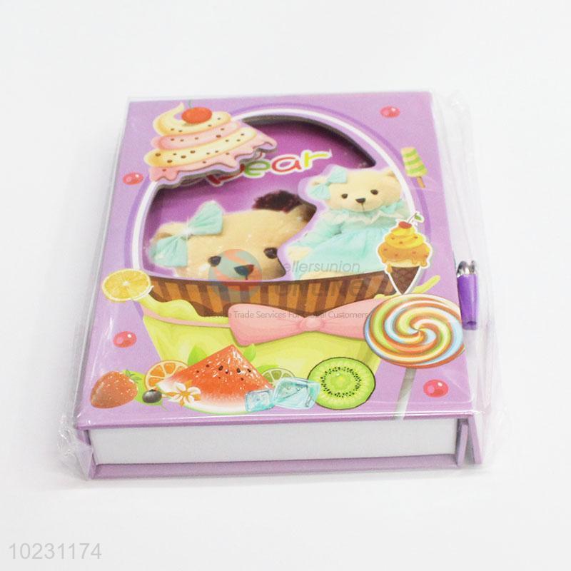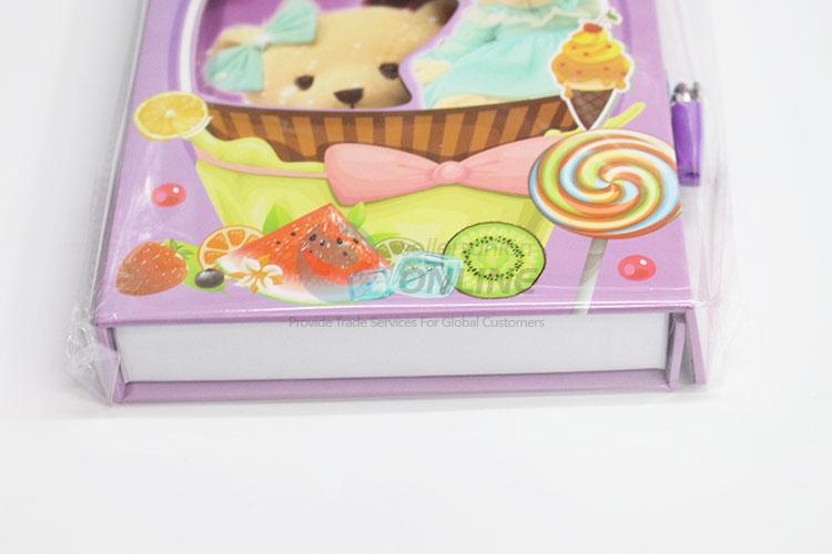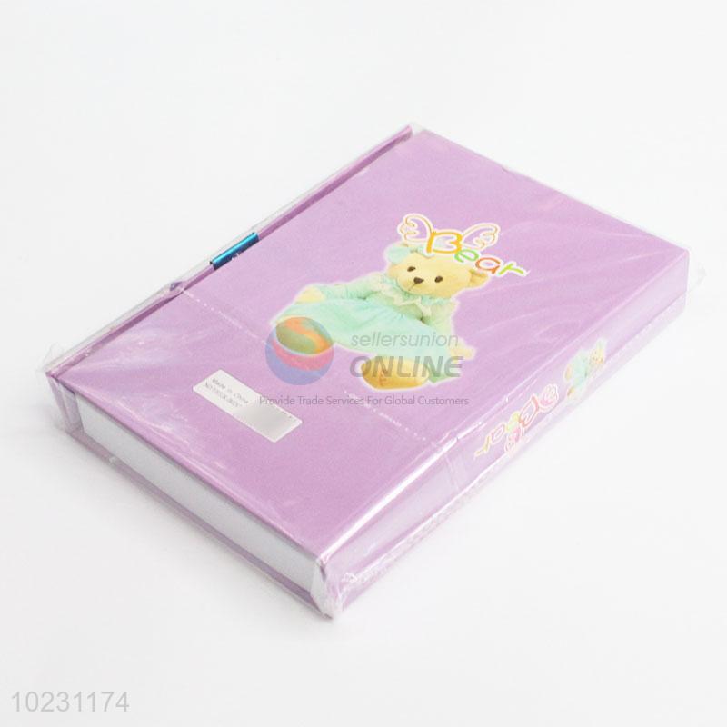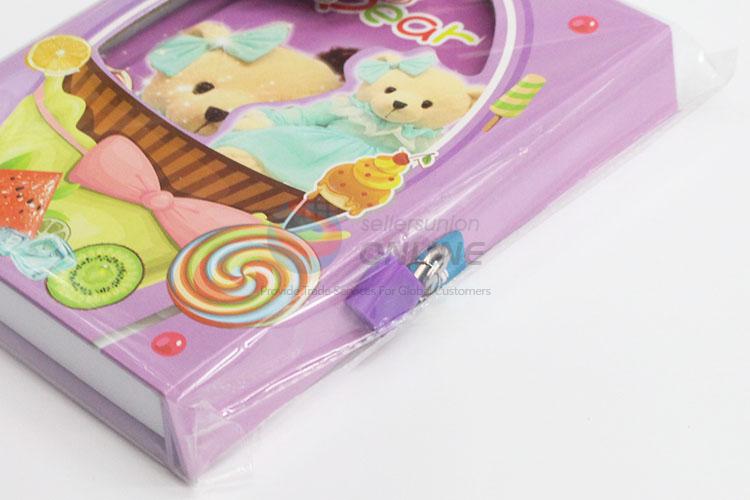 New School Supply Purple Color Bear Pattern Notebook with Lock