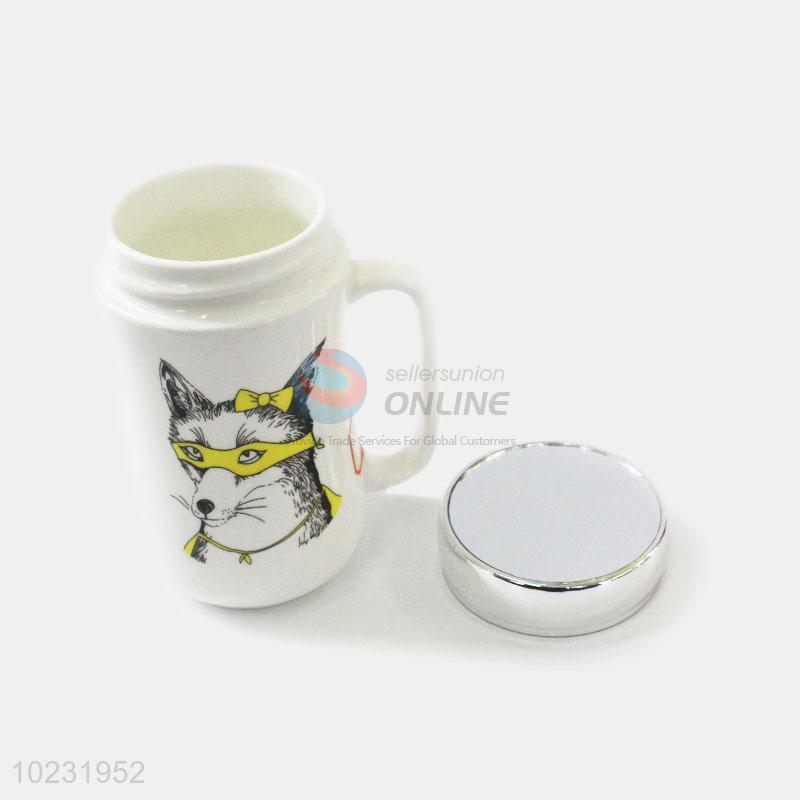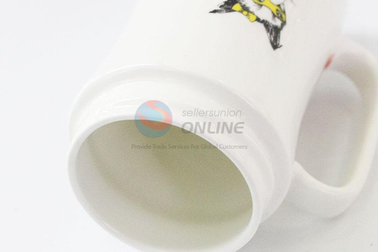 Cute daily use wolf pattern ceramic cup