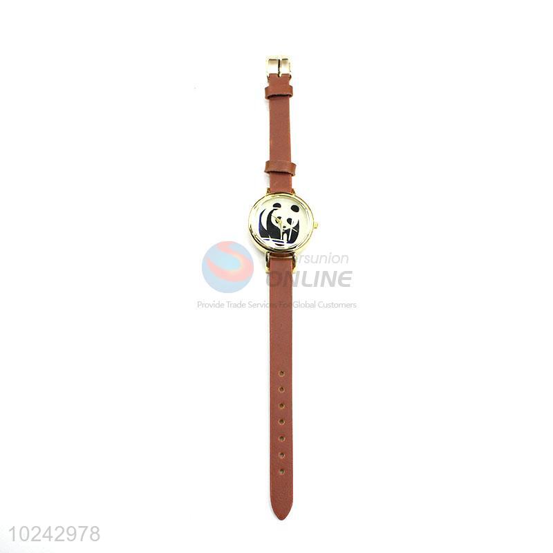 Popular Panda Pattern Brown Wrist Watch with Leathern Watchband for Sale