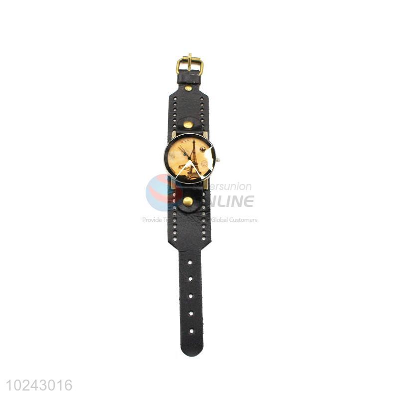 Wholesale Nice Black Wrist Watch with Leathern Watchband for Sale