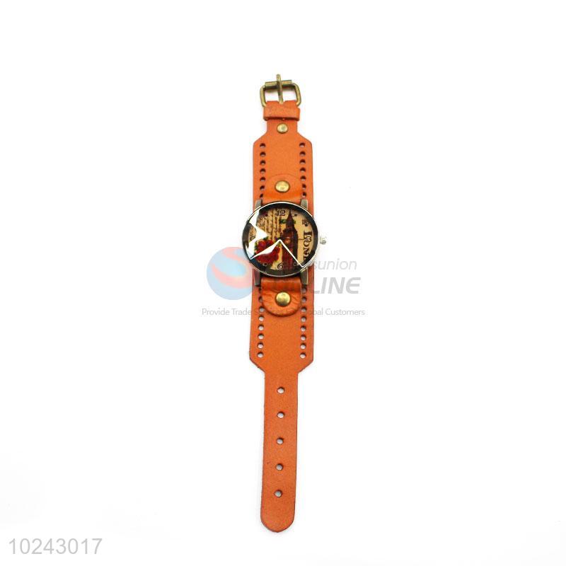 Promotional Orange Wrist Watch with Leathern Watchband for Sale