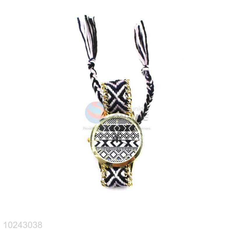 Nice Black and White Wrist Watch with Woolen Yarn Watchband for Sale