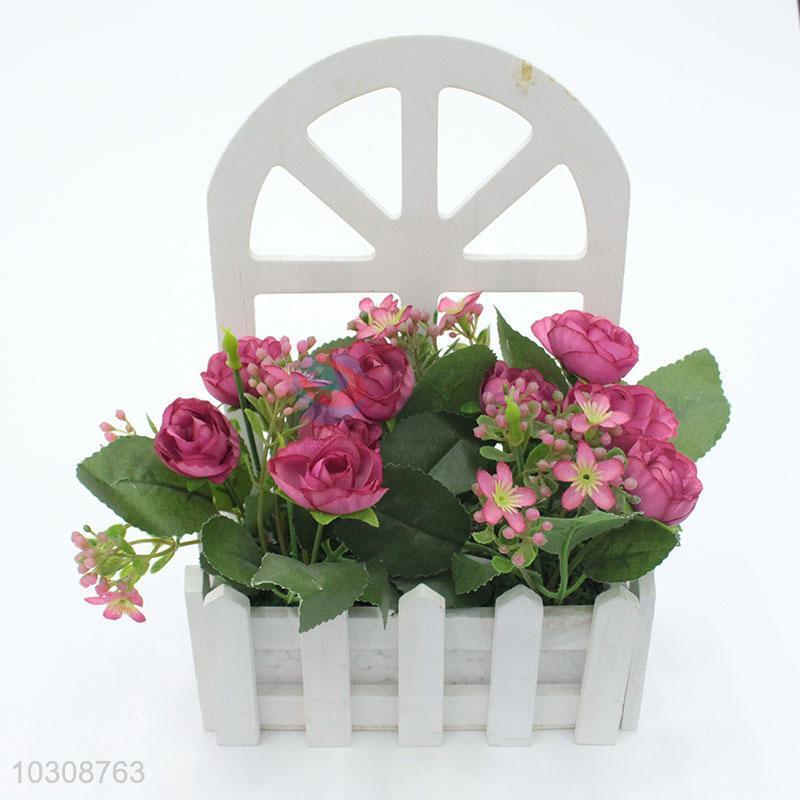 Cheap price artificial flower miniascape with wooden flowerpot for decoration