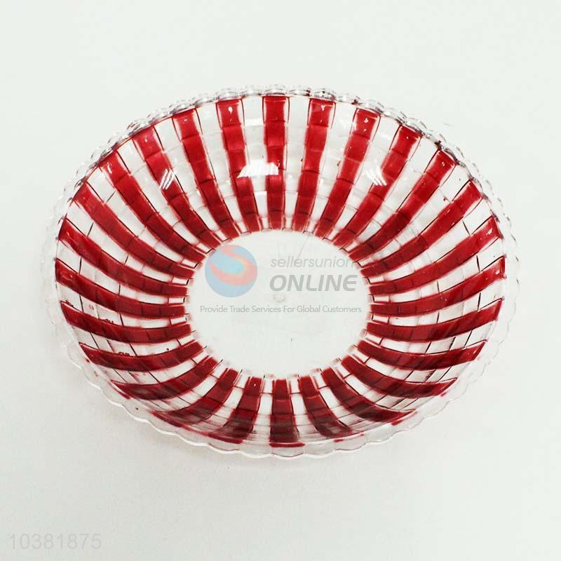 Striped plastic fruit bowl and plate set