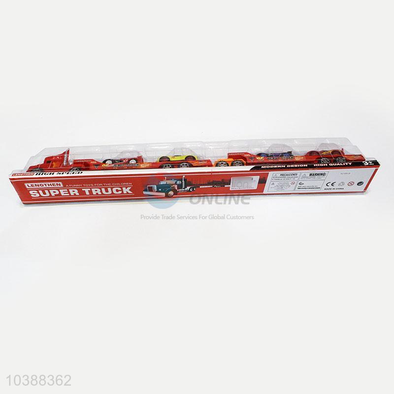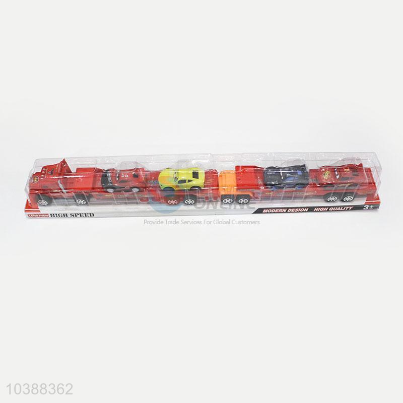 Top Sale Inertia Drag Head Car with Light Music Carry 4pcs Car