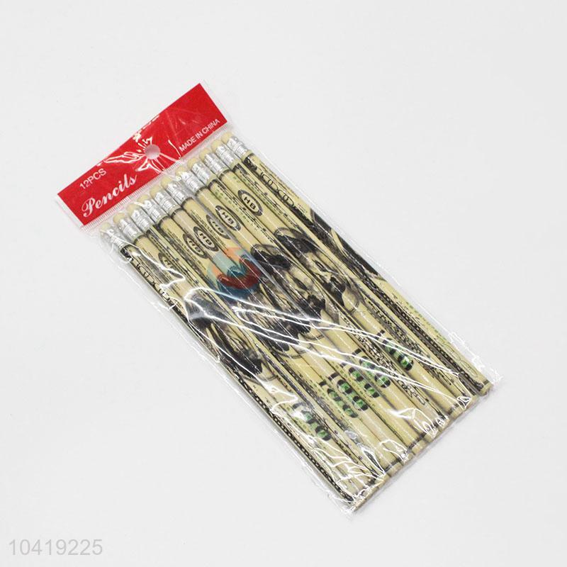 Dollar Pattern Wholesale HB Pencil 12Pcs
