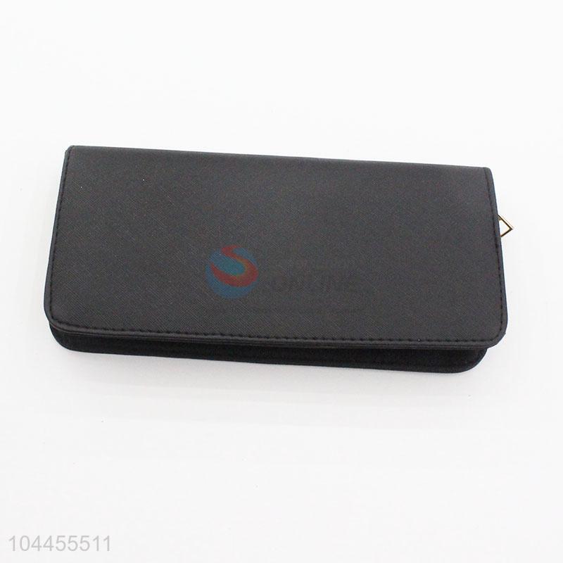 High Quality Black Color Fashion Women Semi Pu Leather Wallet Long Purse