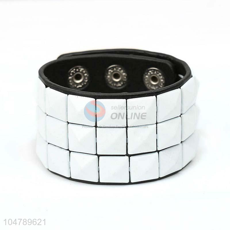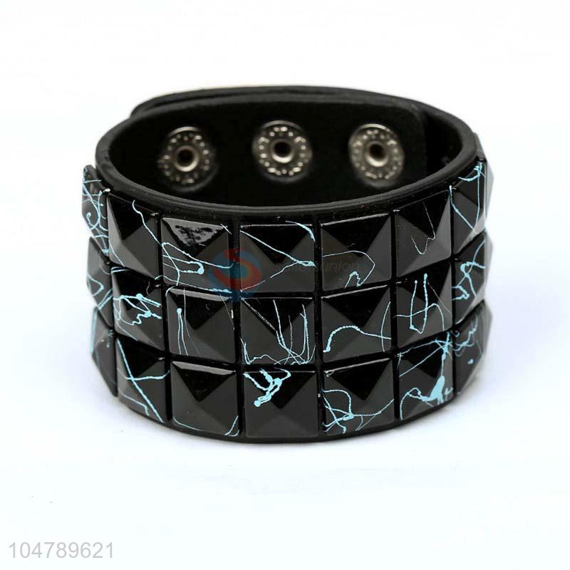 High grade custom vintage leather bracelet with acrylic stones