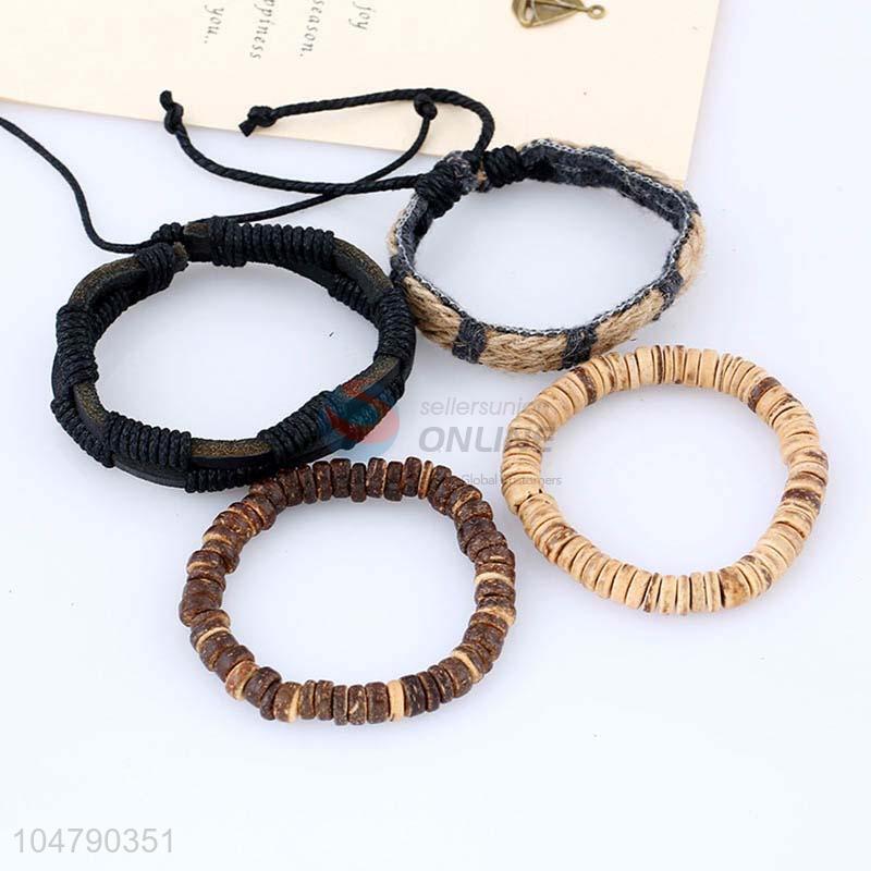 Promotional custom vintage braided leather bracelet set
