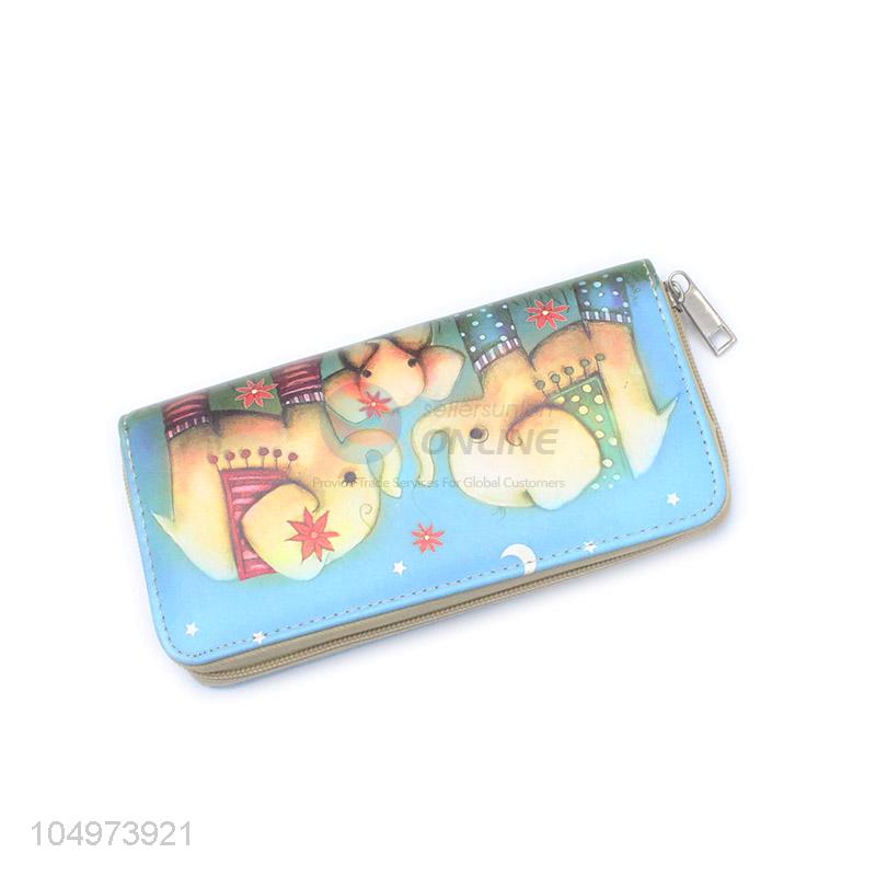 Cheap and High Quality Elephant Pattern Zipper Women's Purse Ladies Long Phone Holder