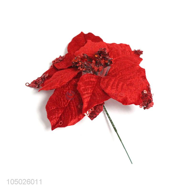 Christmas Supplies Glitter Sequin Tree Ornament Christmas Plastic Flower For Decorating