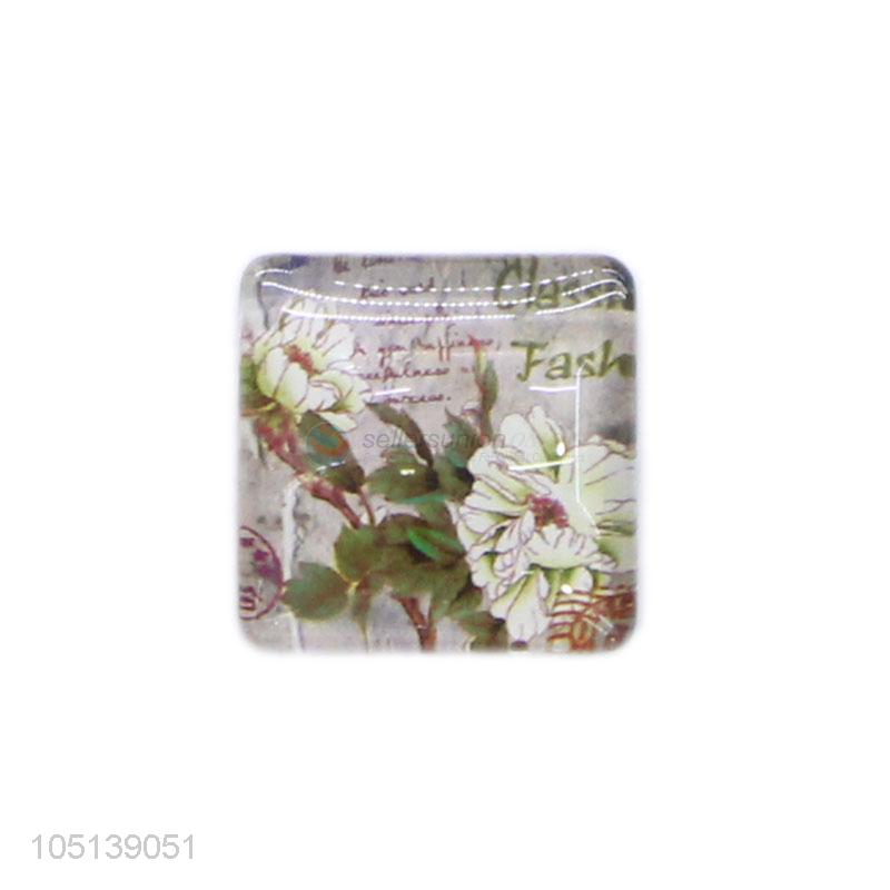 New products delicate square flower pattern glass fridge magnet