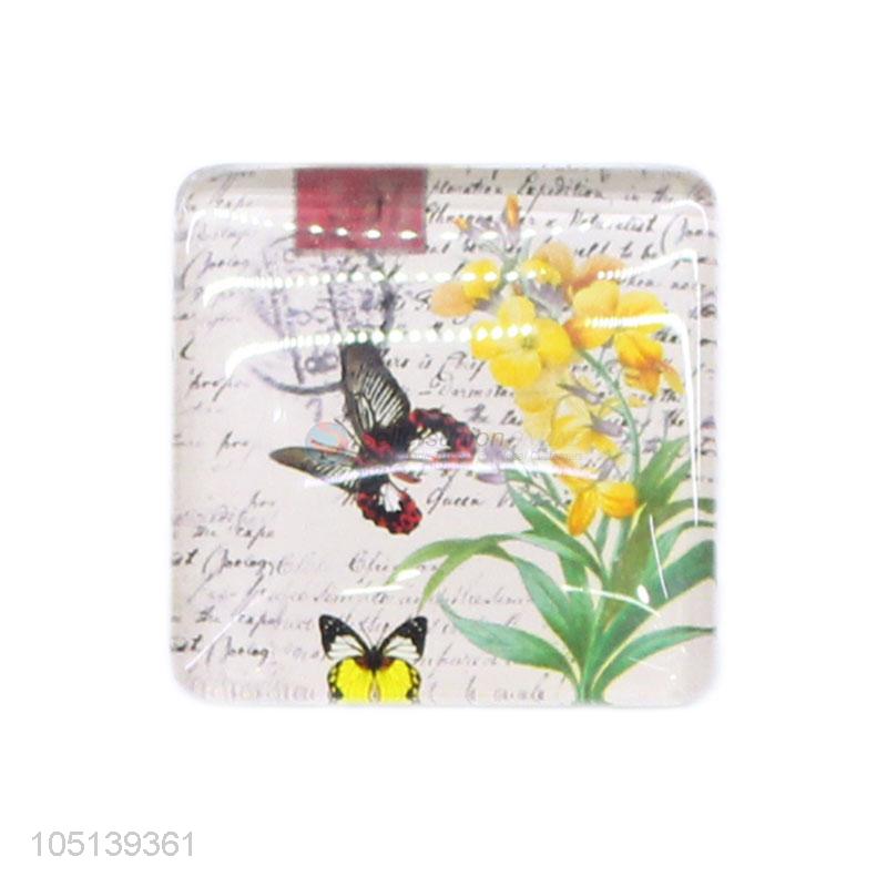 Premium quality delicate square flower pattern glass fridge magnet
