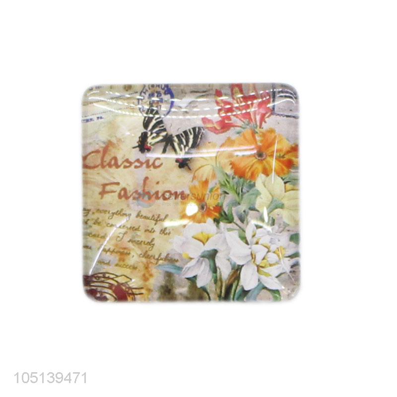 Bottom price home decor square flower pattern glass epoxy fridge magnet