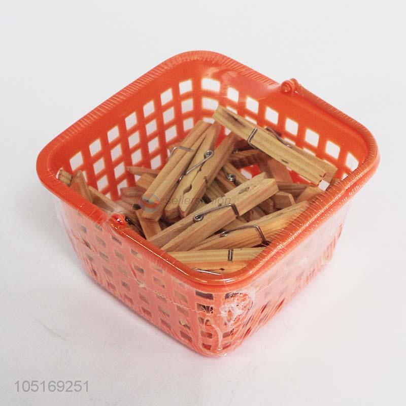 Hot sale 30pcs bamboo clothes clips with plastic basket