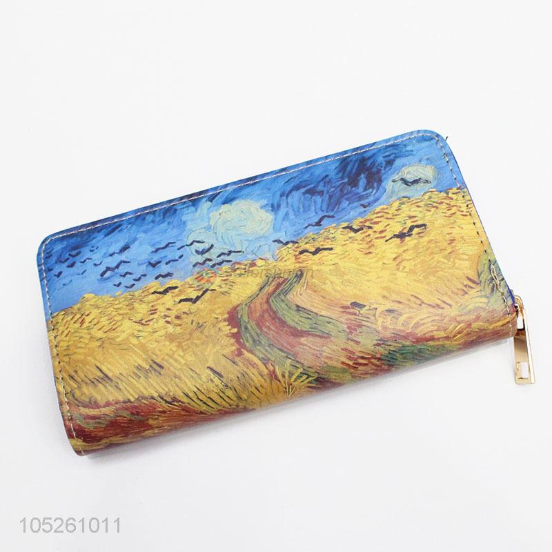 Vegan PU Leather Art Painting Women Clutch Wallet