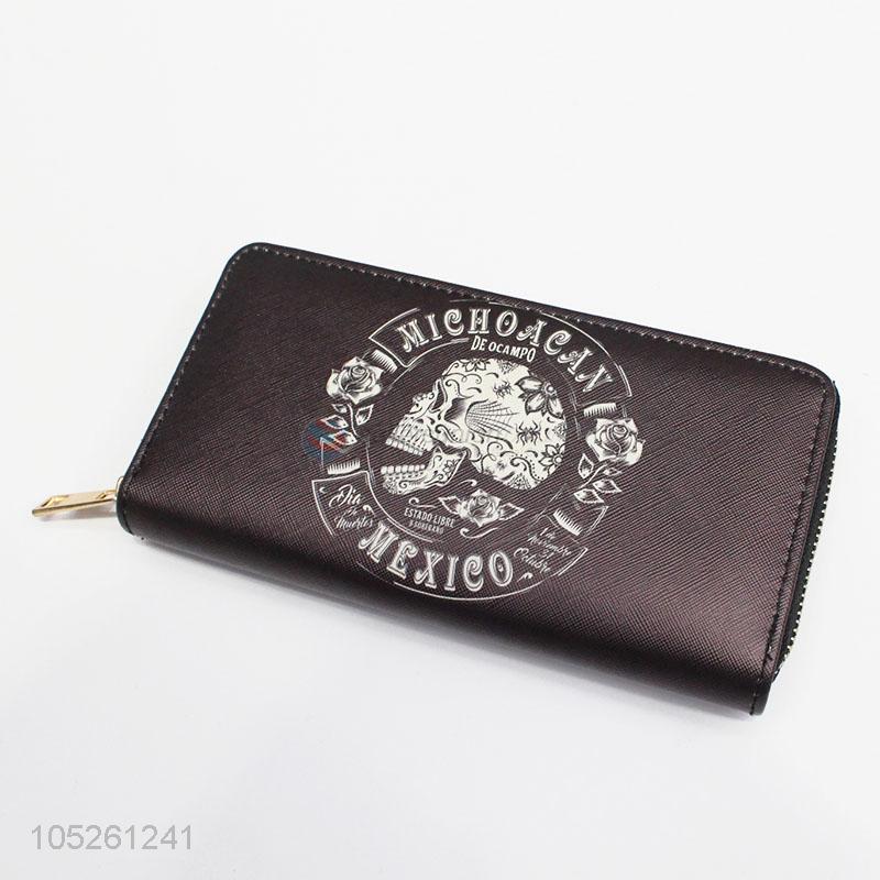 Black Color Punk Style Cool Printed Slim Woman Long Wallet