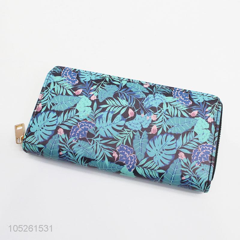 Women Blue Color Flower Pattern Clutch Bag Ladies PU Leather Wallet