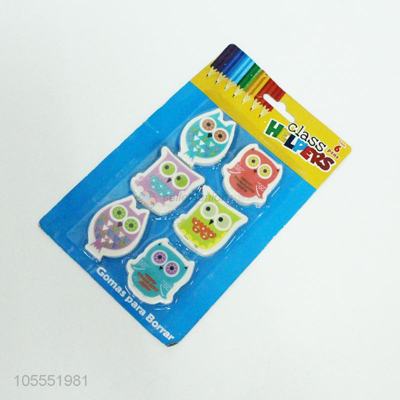 Cute Owl Shape 6pcs Eraser