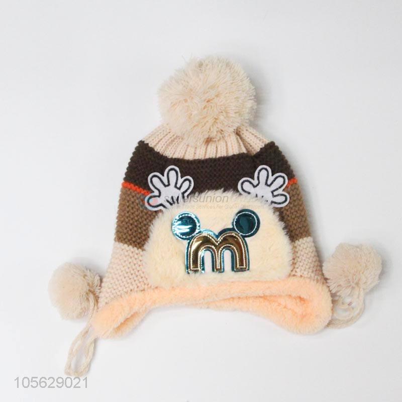 Best Selling Cartoon Knitted Earmuffs Hat For Litter Boy
