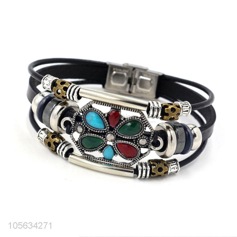 China factory multilayer leather bracelet retro mens alloy bracelets