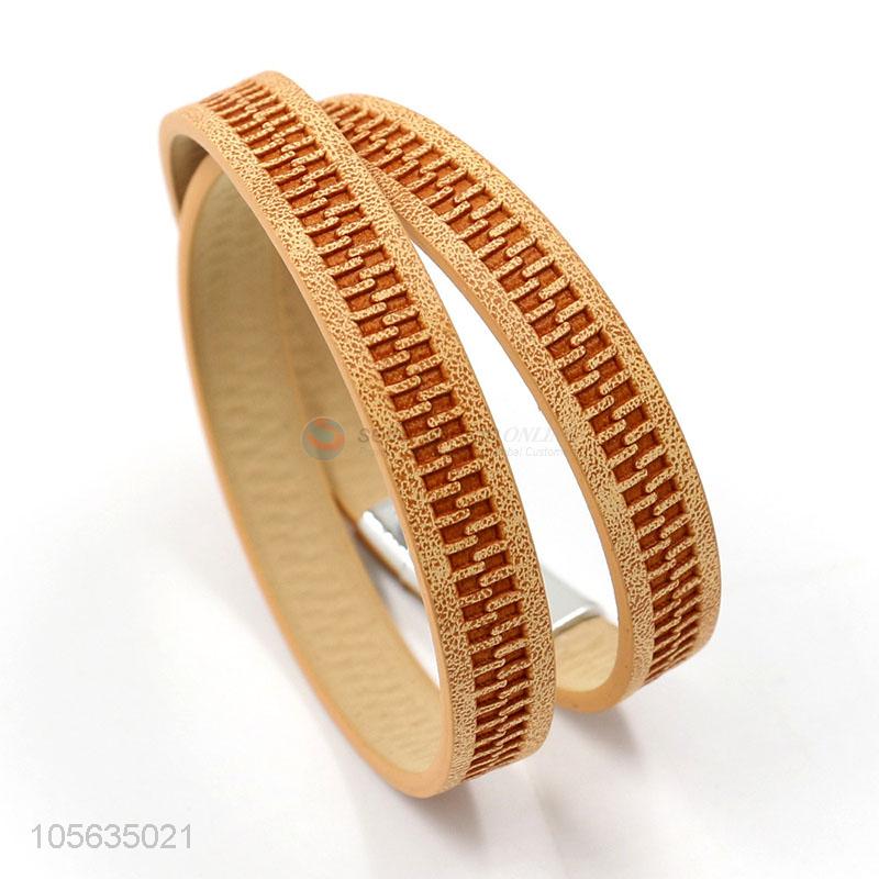 Super quality retro style men leather wrap bracelet with magnetic buckle