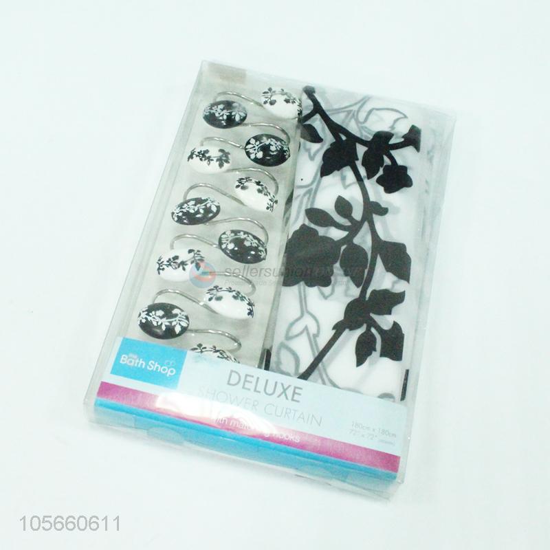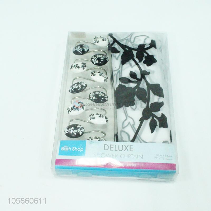 Delicate PEVA shower curtain with 12pcs resin hooks