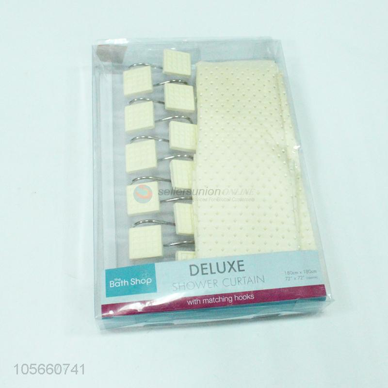 High quality polyester shower curtain matching with 12pcs poly resin hooks
