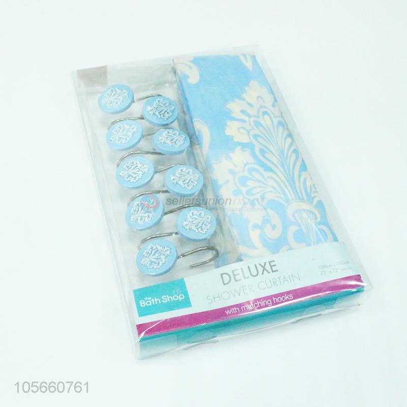 Elegant polyester shower curtain matching with 12pcs poly resin hooks
