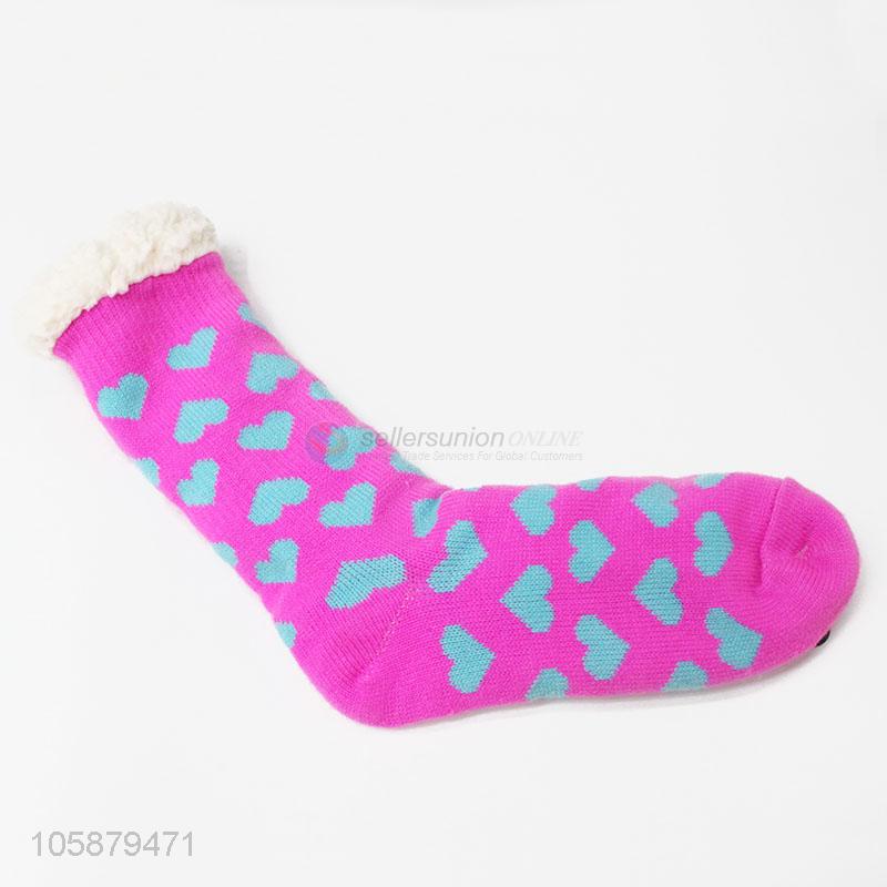 Wholesale Price Love Shape Anti-slip Floor Socks Woman Ski Socks