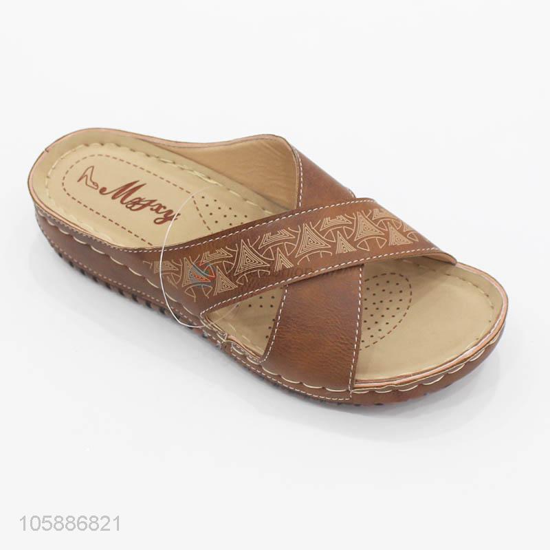 Manufacturer custom roman style women moccasin slope heel slippers