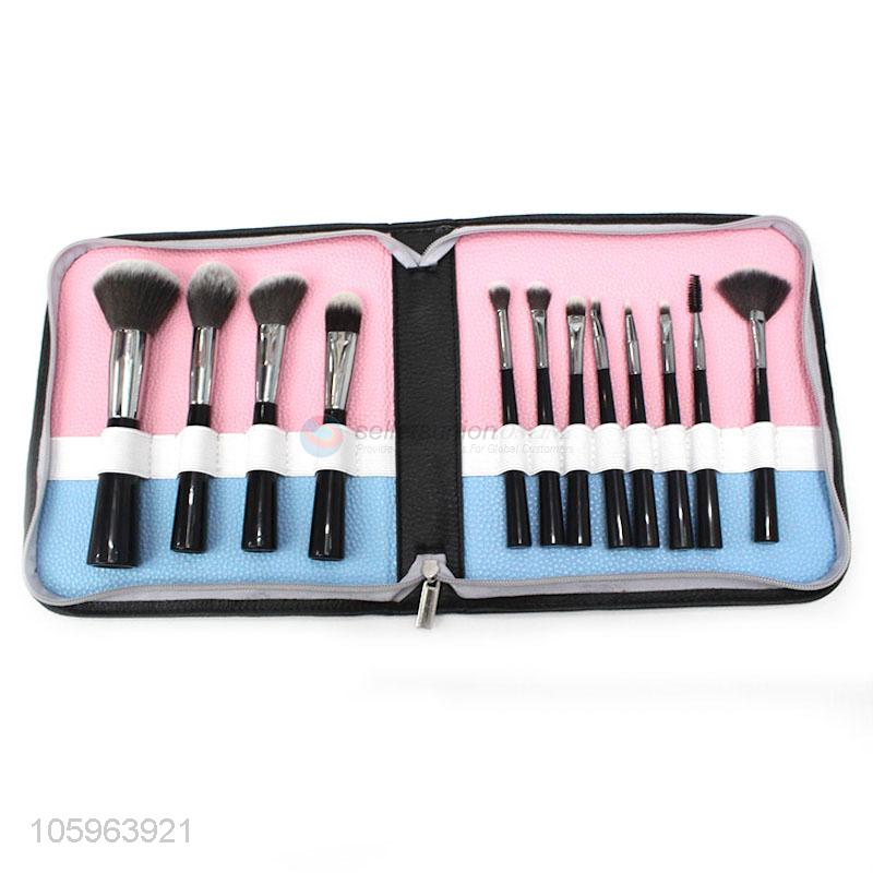 Newest 12 pcs facial professional nylon hair makeup tools set make up brush with pouch