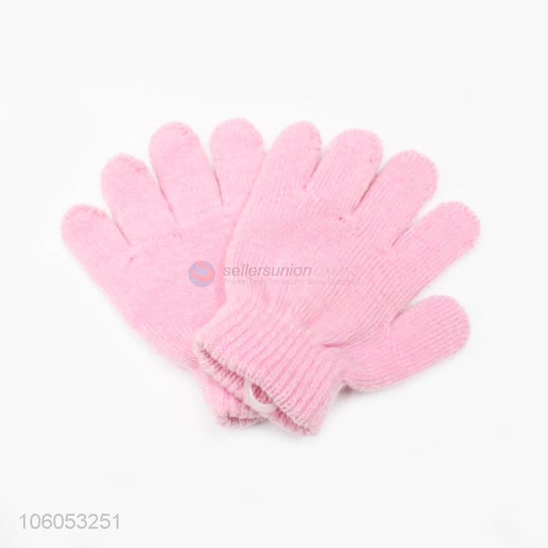 Top selling pink acrylic knitted winter warm gloves for children