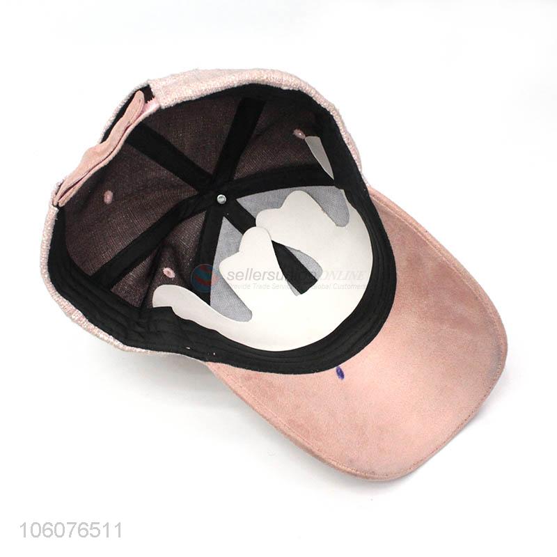 Wholesale stylish 6 panel pink suede baseball caps and hats