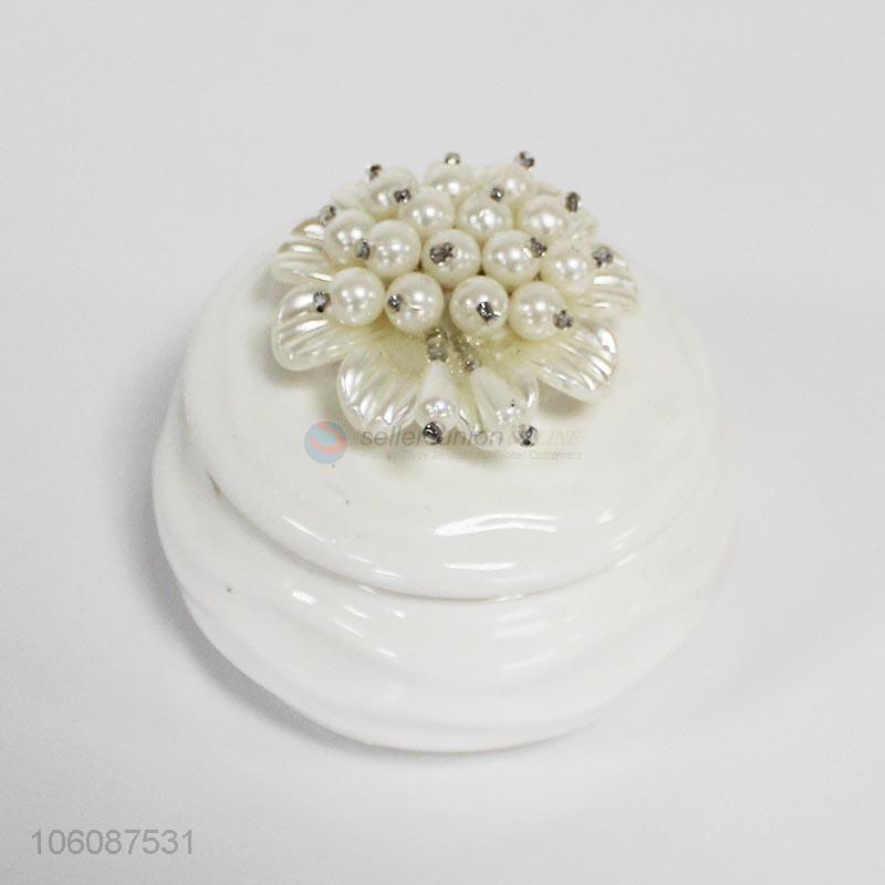 White flower ornament ceramic jewel box trinket present box