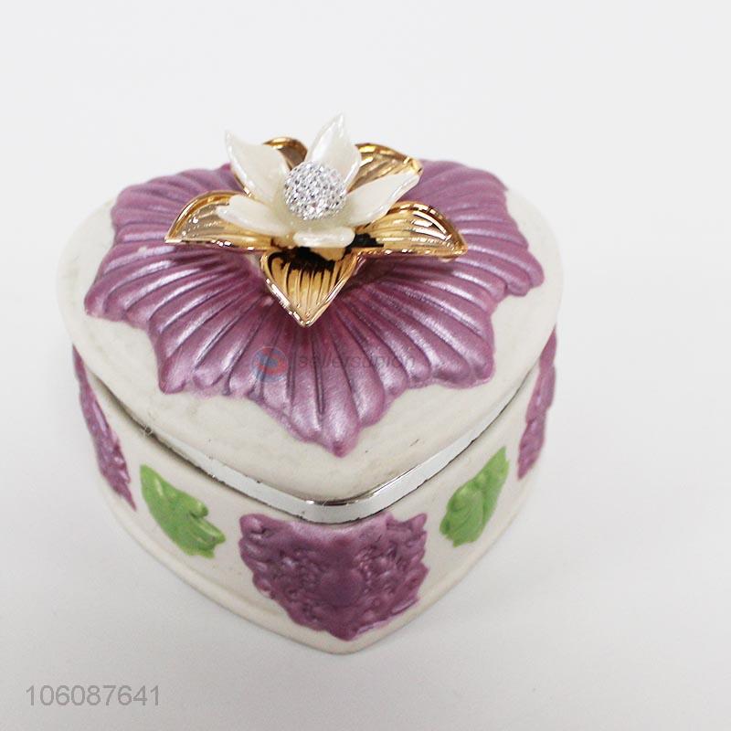 New Product Ceramic Jewelry Porcelain Trinket Box with Flowers on Lid