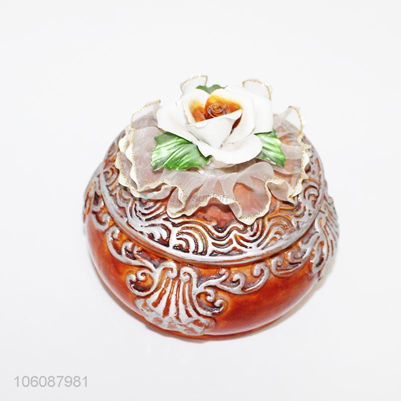 Hot sale flower ornament ceramic jewel box trinket present box